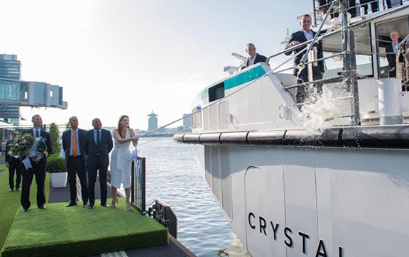 The 106-passenger Crystal Debussy joins the Crystal River Cruises fleet with Broadway actress Rachel York serving as the godmother.