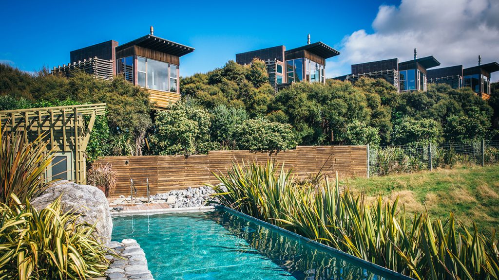 Hapuku Lodge + Tree Houses is a contemporary country hotel located on the South Island of New Zealand, 12 kilometres from Kaikoura, one of the world’s premier eco-marine tourism destinations. National Geographic has called Kaikoura “A maritime Serengeti" and “a Sea World without Walls". As a result, there is a lot to see and do, both on land and at sea. The Lodge provides luxurious accommodation on Kaikoura’s rugged coastline, and offers its guests a place to relax in its intimate indoor/outdoor setting.